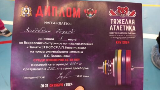 22 октября алданский спортсмен Эдуард Забродин занял первое место в супертяжелой весовой категории среди юниоров до 18 лет на Всероссийском турнире по тяжелой атлетике «Памяти ЗТ РСФСР А.П. Колоктионова на призы олимпийского чемпиона В.С. Голованова».