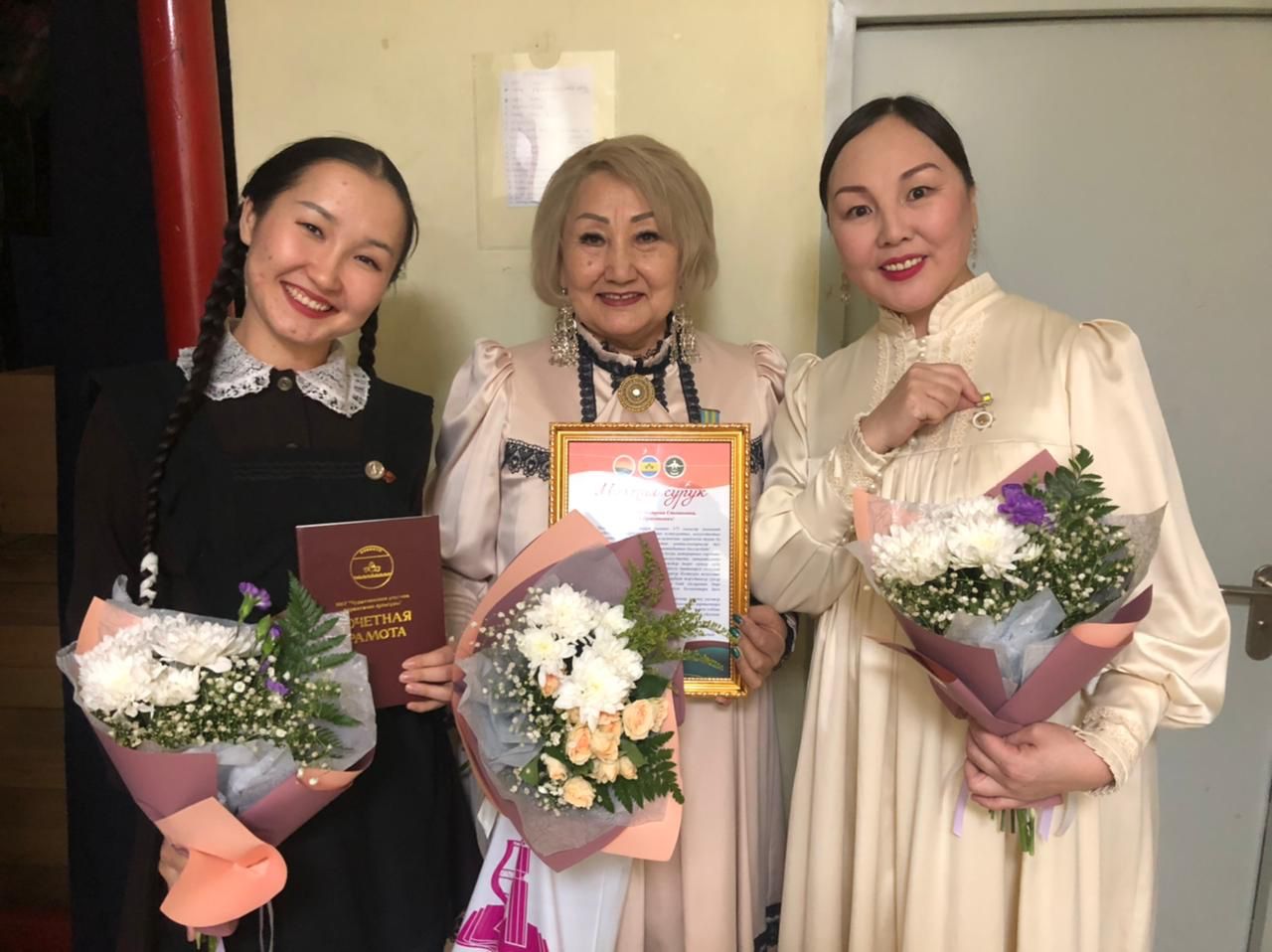 Основатель Государственного театра юного зрителя РС(Я), заслуженный работник культуры РФ и РС(Я) Матрена Павлова была награждена почетным знаком «За заслуги перед районом», заслуженная артистка РС(Я) Анна Флегонтова удостоилась знака отличия «За добросовестный труд», молодой артистке Татьяне Хомподоевой вручили почетную грамоту Чурапчинского улуса (района).