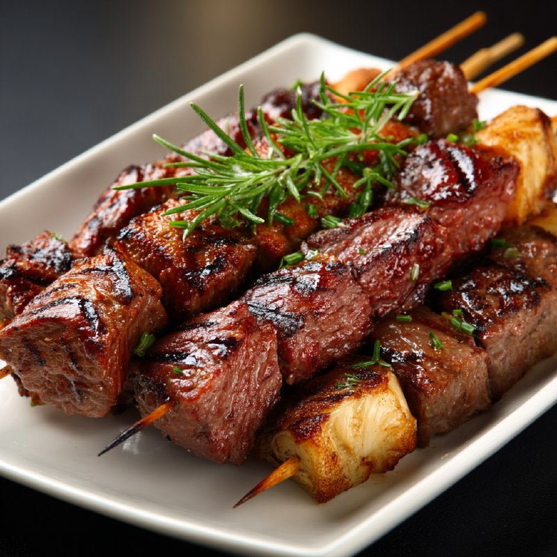 3. Наденьте мясо на шампуры или острые деревянные палки.
