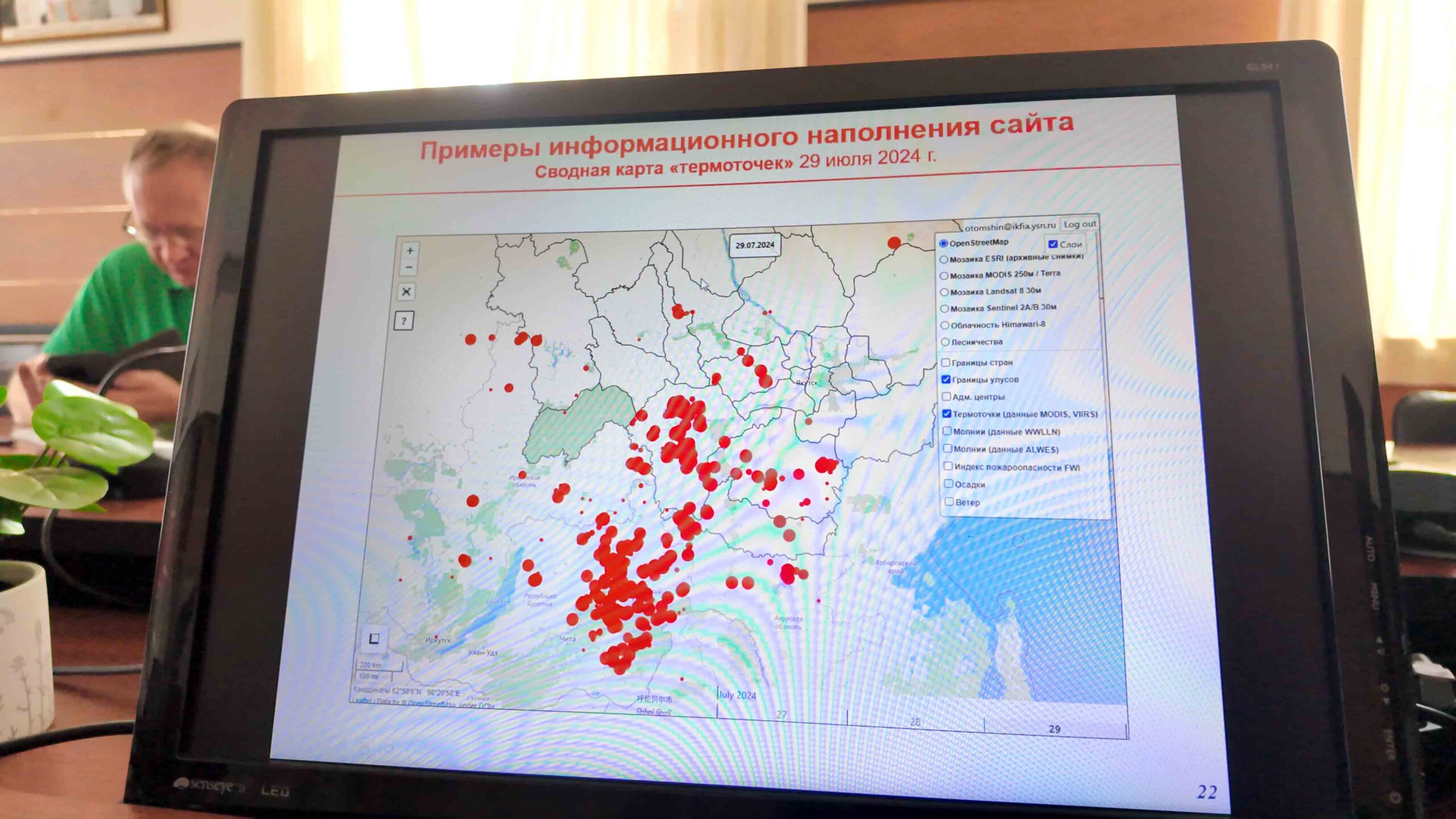 В 2022 г. в рамках выполнения госконтракта Академии наук РС(Я) на базе ИКФИА СО РАН разработан и реализован Интернет-ресурс системы информационной поддержки мониторинга лесопожарной и грозовой обстановки на территории Республики Саха (Якутия) по данным спутниковых и наземных наблюдений.