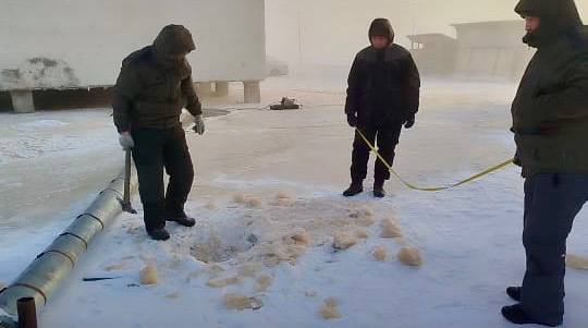В ходе мониторинга сети «Интернет» Министерством экологии выявлен факт утечки сточных вод в селе Борогонцы. Сегодня, 11 декабря инспекторами Усть-Алданской инспекции государственного экологического надзора проведено выездное обследование по установлению факта загрязнения окружающей среды. На месте утечки по адресу Окоемова 73, села Борогонцы, был произведен отбор проб почвенного покрова, измерена площадь загрязнения, также, во время обследования выявлен еще один факт утечки канализационных вод. Общая площадь утечки составляет 4400 кв.м.