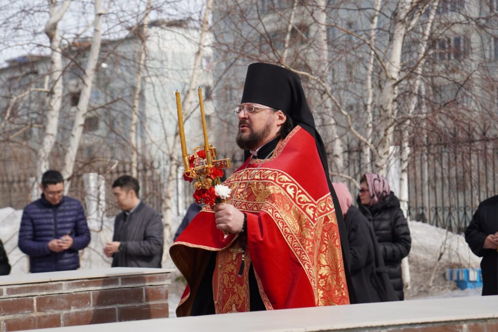 Иеромонах Никандр напомнил о том, что в пятницу Светлой седмицы происходит первое освящение воды после Великого Поста. «Сегодня по традиции мы собрались здесь, у часовни, которая освящена в честь живоносного источника, в этот день церковь празднует образ Пресвятой Богородицы «Живоносный источник Божией Матери», — сказал он.