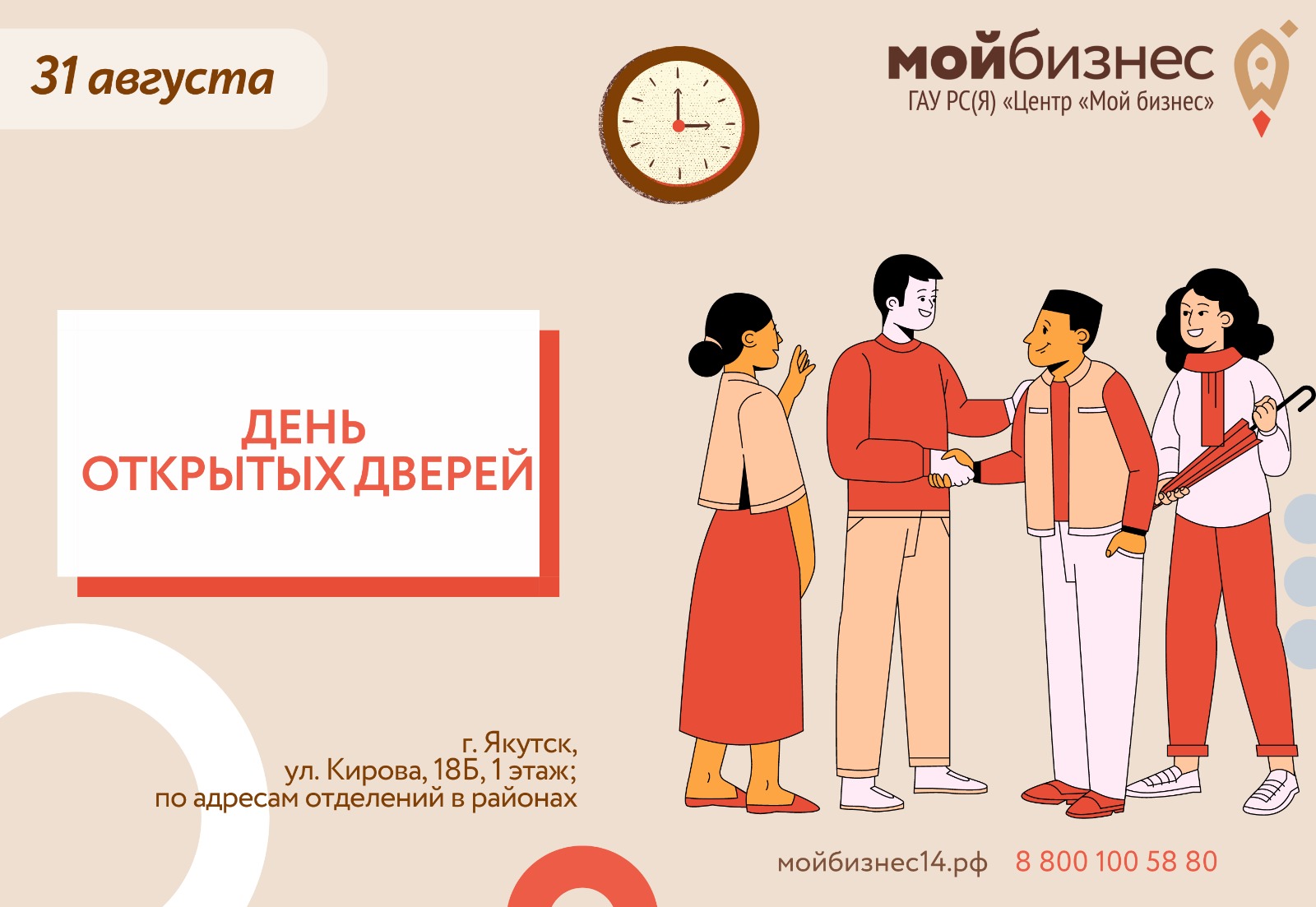 ГАУ РС(Я) «Центр «Мой бизнес» объявляет 31 августа на День открытых дверей.