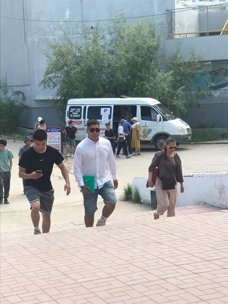 Рядом — съемочная группа телевизионного канала «Якутия 24» берет интервью.