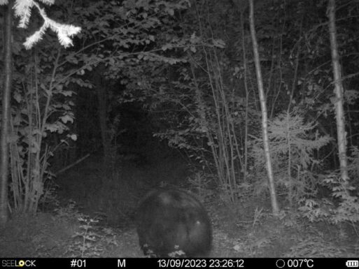 Фотоловушке удалось заснять одинокого медведя, крупного и хорошо упитанного, который на протяжении нескольких дней ходил вокруг да около лесной камеры. Каждое фото сделано в разные дни: 8 сентября, 9 сентября, 11 сентября и крайнее фото сделано 13 сентября.