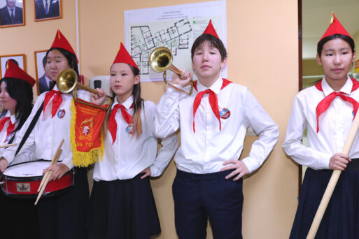 Затем учащиеся школы № 26 города Якутска декламировали стихи и пели песни о комсомоле и пионерии. Мероприятие продолжилось торжественным приемом в ряды октябрят.