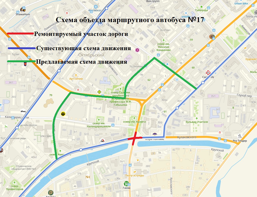 Маршрутные автобусы №2, №5, №7, №17 и №35 будут осуществлять движение согласно разработанным схемам объездов.