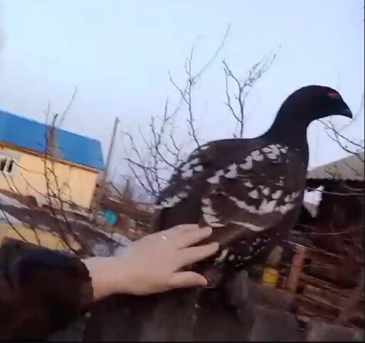 Видеофакт: Лесной глухарь залетел во двор и даже дал себя погладить