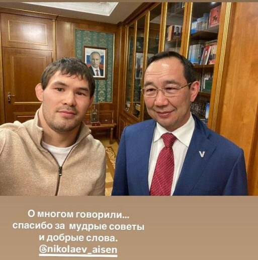 Виктор Рассадин в соцсетях поблагодарил Айсена Николаева за добрые слова и мудрые советы. И, конечно же, фото на память. Когда состоялась встреча и по какому поводу — не упоминается. Судя по всему, встреча состоялась вчера.