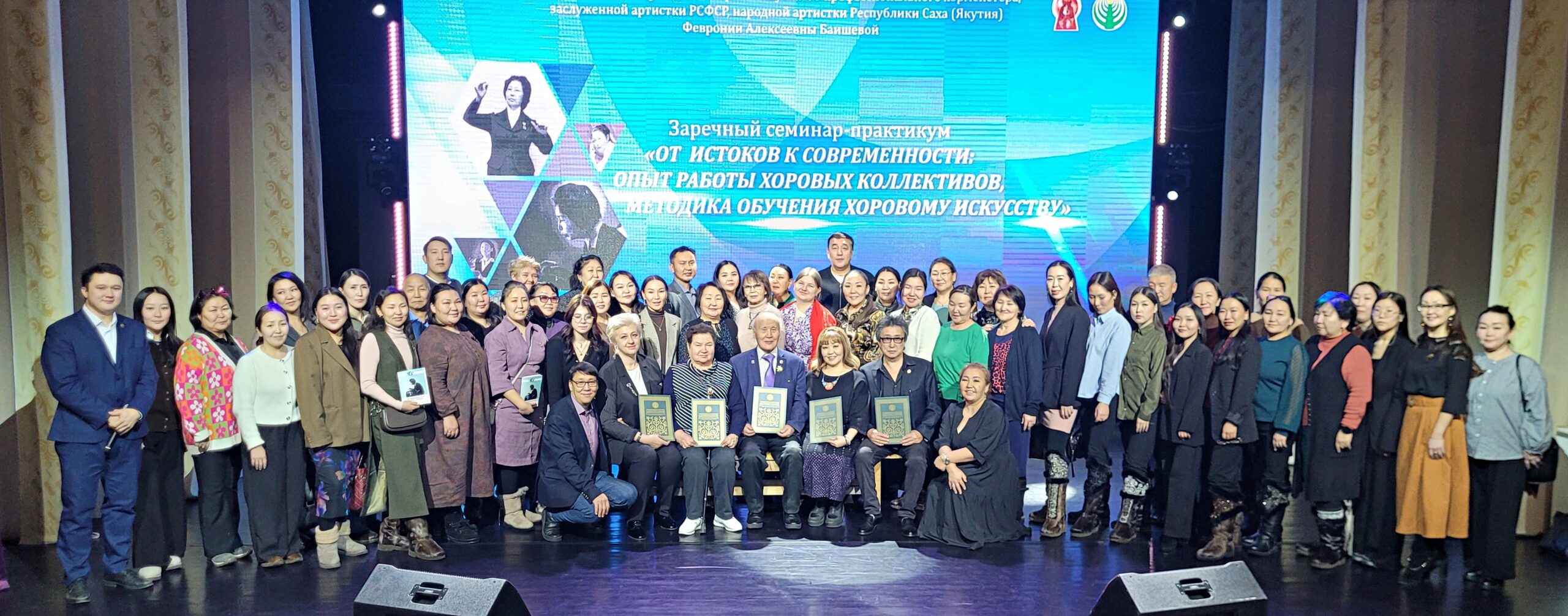 Отмечу, что неделями раньше делегация хормейстеров в составе: Т. Н. Нетёсовой (ЯМК им. М. Жиркова), Л.А. Шумиловой (Госфилармония), В.П. Индигирского (ДШИ 2), Н.Е. Поповой (ДШИ№1), (ЯМК им. М. Жиркова) побывала в селе Майя Мегино-Кангаласского улуса для участия в работе семинара-практикума и провела мастер-классы для руководителей хоровых коллективов, преподавателей ДШИ, ДМШ, учителей музыки СОШ, музыкальных руководителей детских садов, руководителей вокальных формирований КДУ, участников хоров и ансамблей.