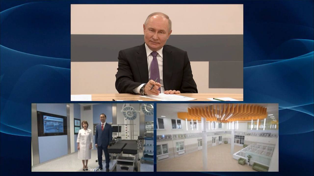 На фото: Владимир Путин открыл по видеосвязи Онкоцентр в Якутске в феврале 2024 г.
