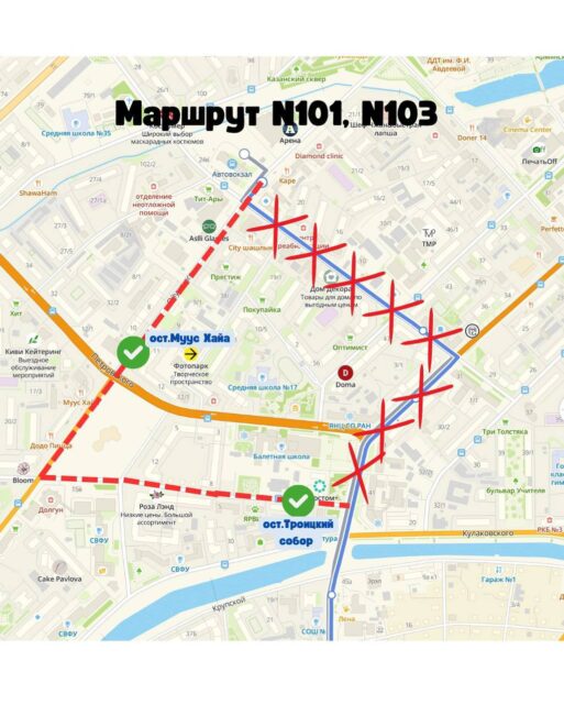 Временные схемы объезда общественного транспорта (по возрастанию номеров маршрутов)