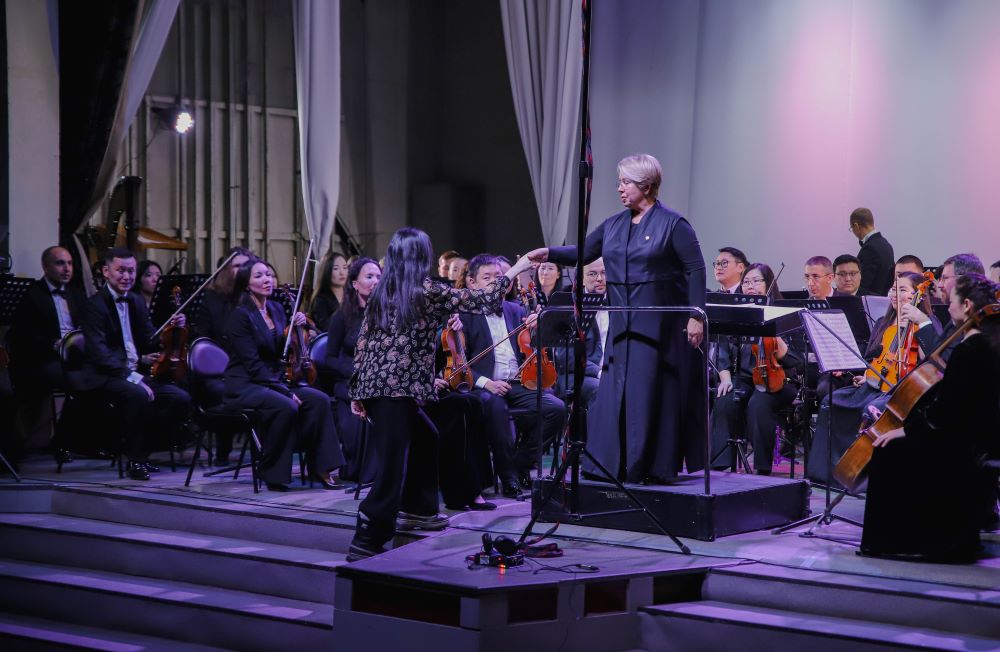 Далее оркестр представил ПРЕМЬЕРУ – впервые на якутской земле прозвучало произведение Анастасии Дружининой (Республика Бурятия, г. Улан-Удэ) – сюита из балета «Земля веры – Баргуджин Тукум».