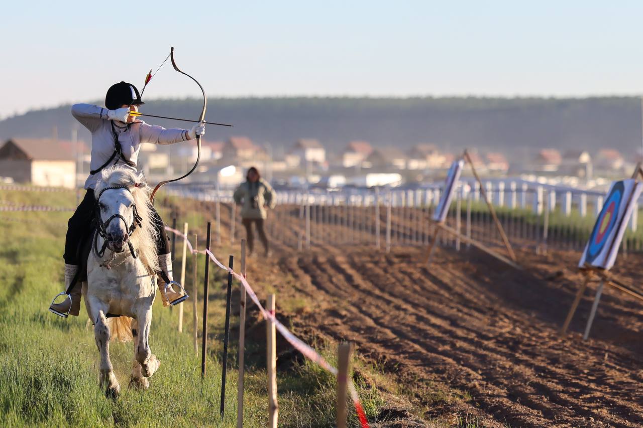 Соревнования по стрельбе из лука верхом на лошади проведены на специальной дорожке длиной 90 метров и шириной 2-4 метров, на которой установлены 3 мишени размером 45 х 100. см. Главное условие – стрелок должен стрелять по мишеням, не останавливая галоп лошади.