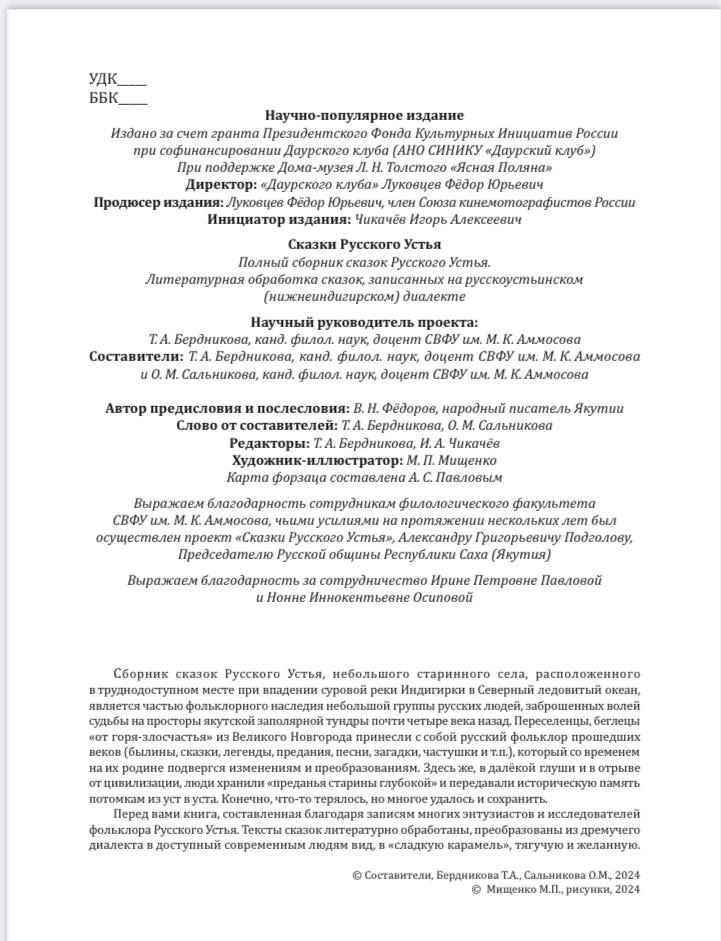 Сказки Русского Устья, которые ранее были в виде полевых записей, после литературной обработки теперь открываются перед широким кругом российских читателей.