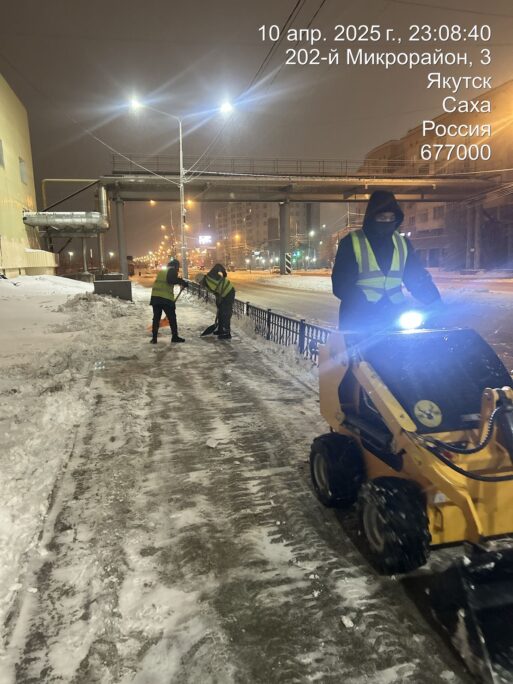 По информации «Якутдорстрой», к уборке и вывозу снега привлечена вся имеющаяся спецтехника, работы ведутся в круглосуточном режиме. Усилены противопаводковые мероприятия – из общего количества уличных водосточных лотков протяженностью 57 тысяч погонных метров пропарено 18 тысяч п. метров, что составляет 31 процент от общего объема. Ведутся работы по пропарке: ул. Тимирязева, ул. Орджоникидзе, ул. Ярославского, ул. Петра Алексеева, ул. Пояркова, проспект имени М.Е. Николаева, а также на Горканале.