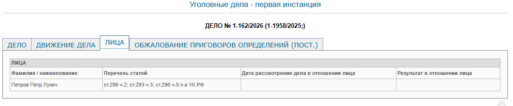Вину в совершении указанных преступлений обвиняемый Петров не признал. Судебный процесс продолжается — сегодня состоялось очередное заседание.