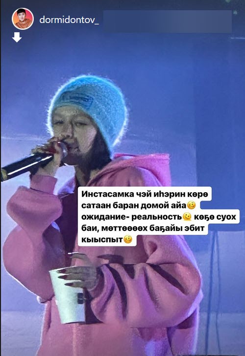 Владимир Дормидонтов поделился впечатлениями после нашумевшего концерта Инстасамки в Якутске. Его насмешила вязаная шапочка и постоянное прихлебывание горячего чая звездой.