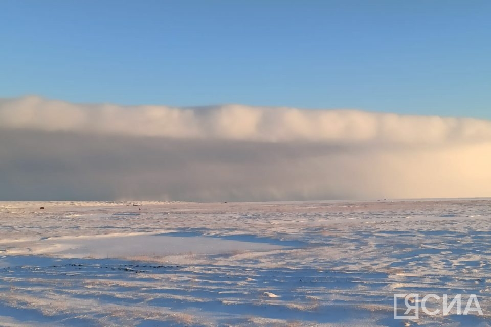 «В этот момент мы ехали из Быков Мыса в Тикси на вездеходе. Было пасмурно и серо, но вдруг выглянуло солнце, и стена из облаков двинулась в сторону моря. Очень интересное явление», – рассказал житель поселка Быков Мыса Айсен Попов, запечатлевший происходящее.