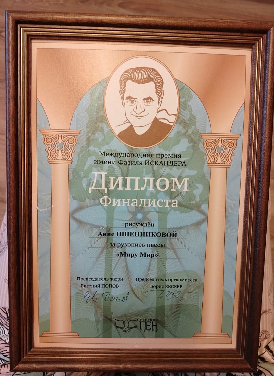 20 декабря, в Москве состоялось торжественное награждение победителей Международной премии в области литературы имени Фазиля Искандера. В число финалистов престижной литературной награды вошла драматург и детский писатель Анна Пшенникова.