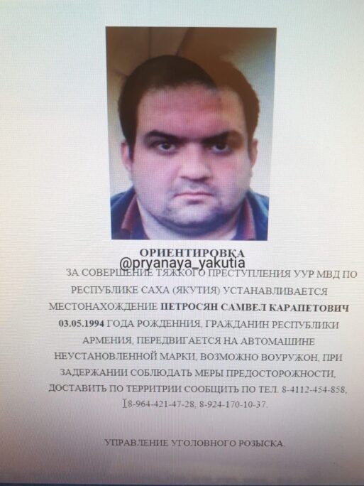 Отметим, что сразу по следам происшествия Следком возбудил уголовное дело по признакам состава преступления, предусмотренного ч.3 ст. 30 – пп. «а», «ж», «е» ч.2 ст. 105 УК РФ (покушение на убийство двух или более лиц, совершенное группой лиц общеопасным способом). После стрельбы полиция объявила в розыск и разослала ориентировки на Анушавана Петросяна и Самвела Петросяна. Вскоре выяснилось, что Анушаван Петросян — сын известного в Якутске владельца строительного бизнеса Гамлета Петросяна.