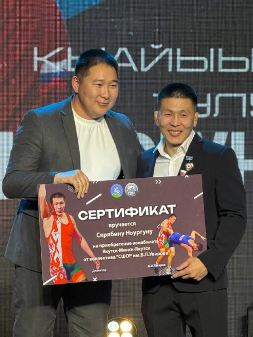 Директор СШОР Мегино-Кангаласского улуса Дьулустан Захаров от имени коллектива вручил Ньургуну Скрябину сертификат на авиаперелет по маршруту «Якутск-Минск-Якутск» в течение 2026 года ✈️🇧🇾👏🏼