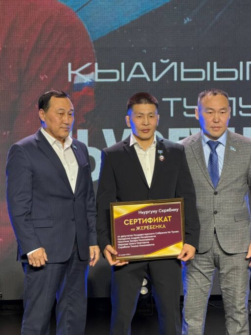 Депутаты Ил Тумэн от Мегино-Кангаласского улуса Андрей Находкин, Тихон Скрябин, Олег Марков и Захар Никитин с теплыми словами и благодарностью вручили сертификат на жеребенка 👏🏼