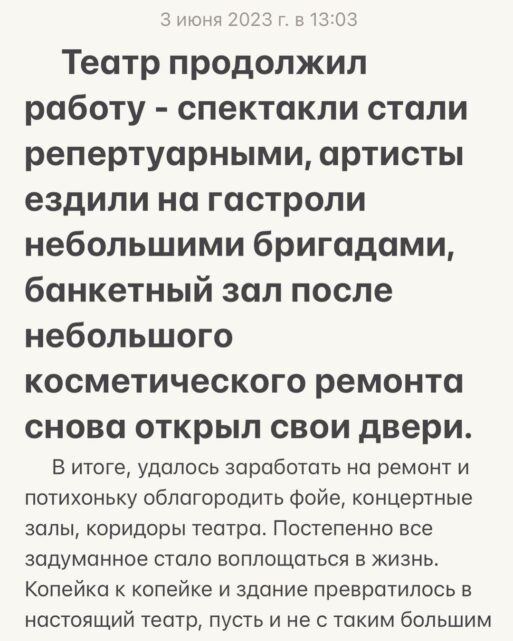 И вот @charanskaya встает у руля театра и с самого начала руководства ей удается выбить здание клуба «Европа», других подходящих вариантов на тот момент не было. Но это лучше, чем ничего, подумала Татьяна и со всем коллективом переехала в новое здание. Все бы ничего, но оказалось, что там требуется ремонт с огромными вложениями. Правительство же ясно дает понять, что вот вам здание, а ремонт давайте как-нибудь сами. Ок, как-нибудь справимся — думает Татьяна.