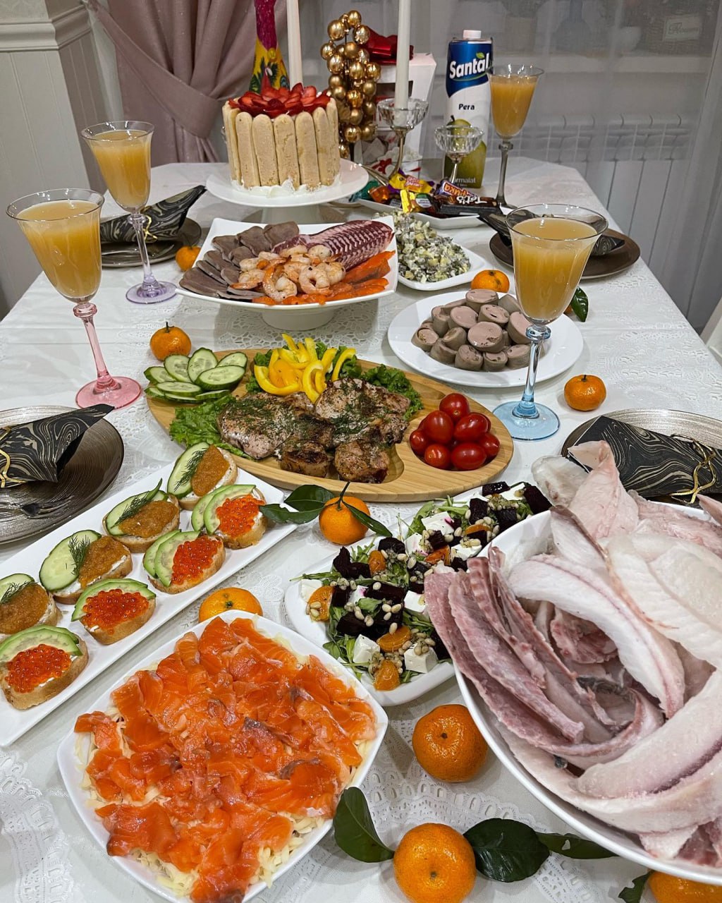 В этот день каждая хозяйка старается старается удивить своих родных и гостей вкусными и красивыми блюдами. Певица и знатная хозяюшка Олимпия показала свой новогодний стол.