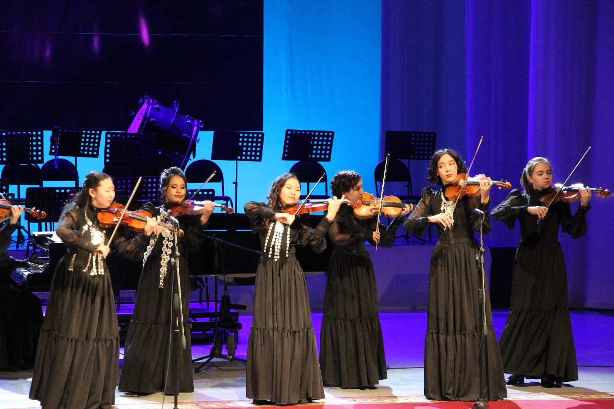 Концерт своим выступлением открыло любимое и самое прославленное детище творческого тандема Афанасенко-Габышевой – Государственный ансамбль скрипачей РС (Я) «Виртуозы Якутии». Они исполнили свои лучшие номера, с которыми покоряли зрителей по всему миру: