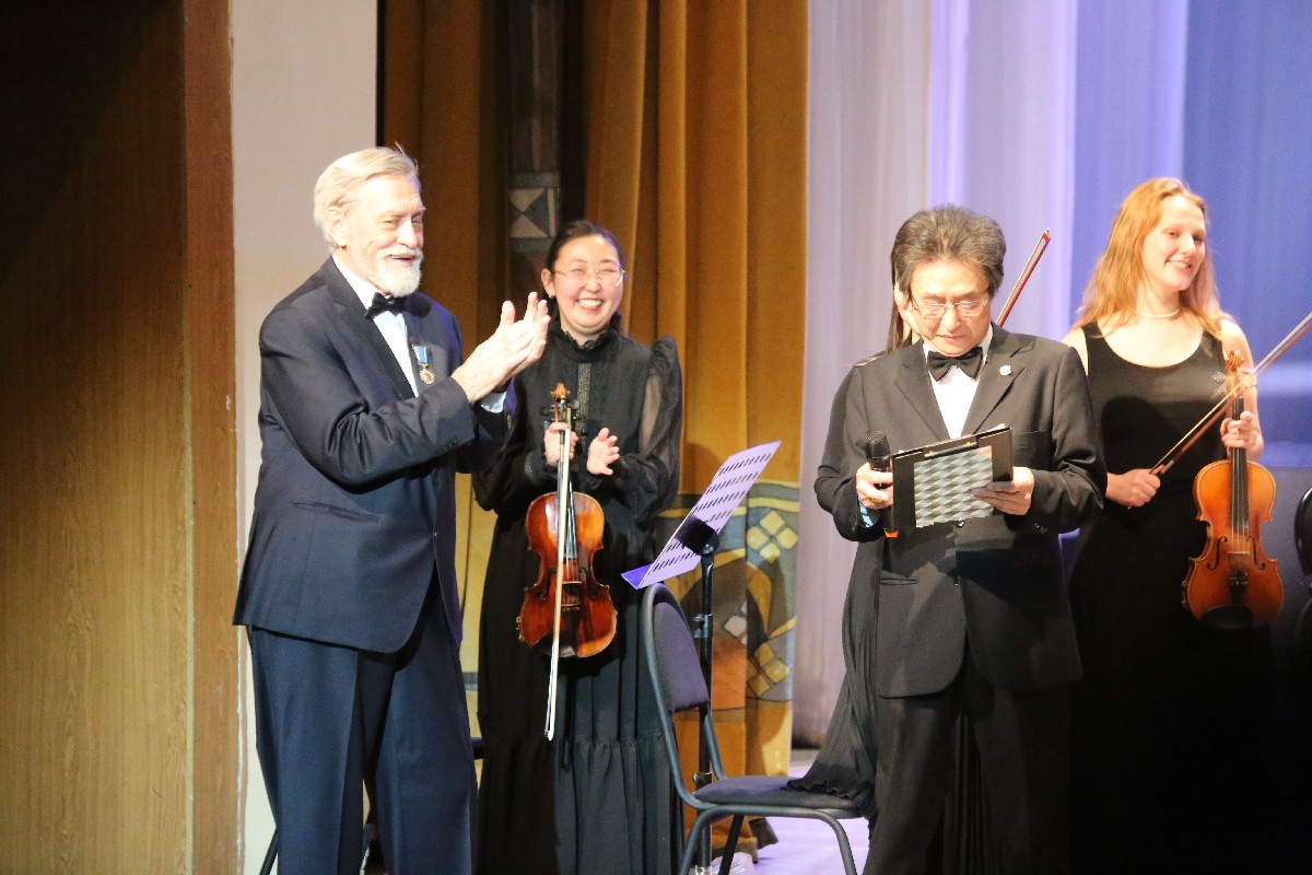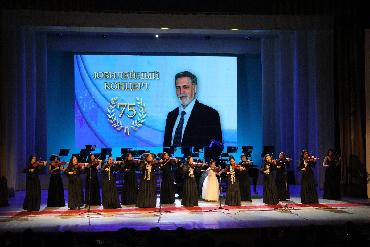 В составе камерного оркестра ВШМ РС (Я) им. В.А. Босикова играют несколько учеников маэстро. Приятно было видеть, как оркестранты начали исполнение первого номера с музыкальной шутки-поздравления – сыграли “Happy birthday». Затем прозвучали классические произведения: