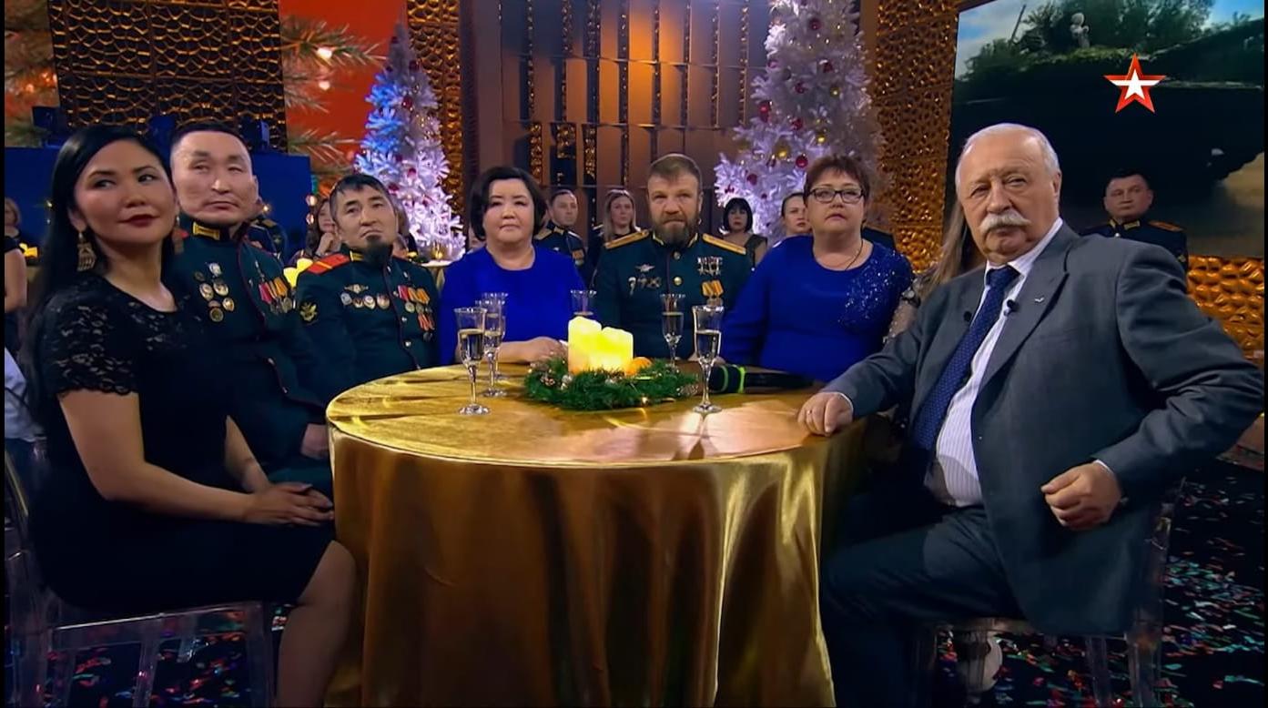 А вести такую программу, конечно, доверили только тому человеку, который сам не раз побывал на передовой. Именно поэтому в новогоднюю ночь с гостями концертной студии «Звезды» и зрителями канала — народный артист России Леонид Якубович, за плечами которого 40 командировок в «горячие» точки. А его соведущей стала очаровательная Дарья Пиманова — автор программы «Легенды музыки» на телеканале «Звезда». Вместе они поздравили военнослужащих в студии и тех бойцов, которые даже в новогоднюю ночь рискуют жизнью на фронте.